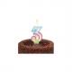 • Kerze weiß mit dreifarbigen Druck in blau, rosa und limettengrün